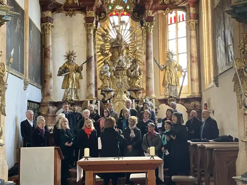 Die anschließende Agape, organisiert von den Mitgliedern des Pfarrgemeinderates, bot uns die Gelegenheit mit den Pilgern und Gläubigen in Kontakt zu treten und ins Gespräch zu kommen. Darüber hinaus erklang noch das ein oder andere Kärntnerlied, das zum Gelingen dieses Ereignisses beitrug.